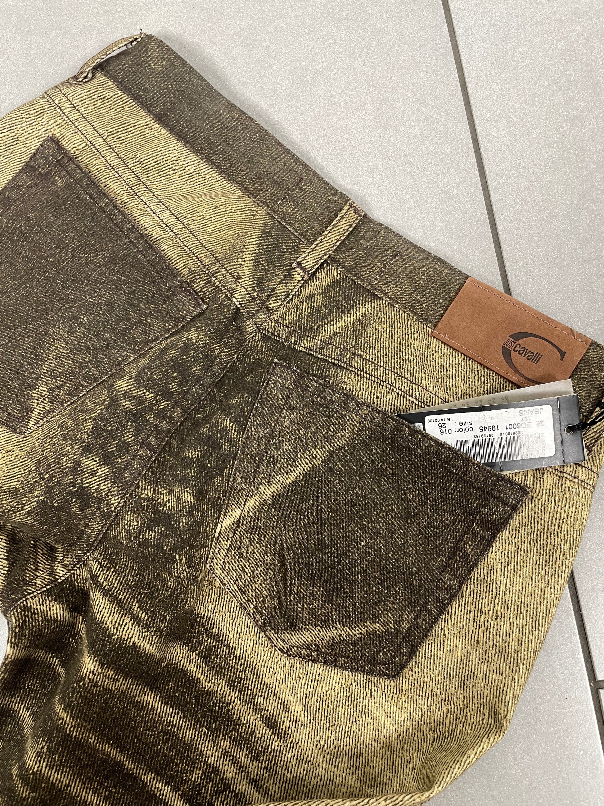 Rare collectible piece from early-00s Cavalli, featuring signature metallic coating and deep golden gradient. Made in Italy.
