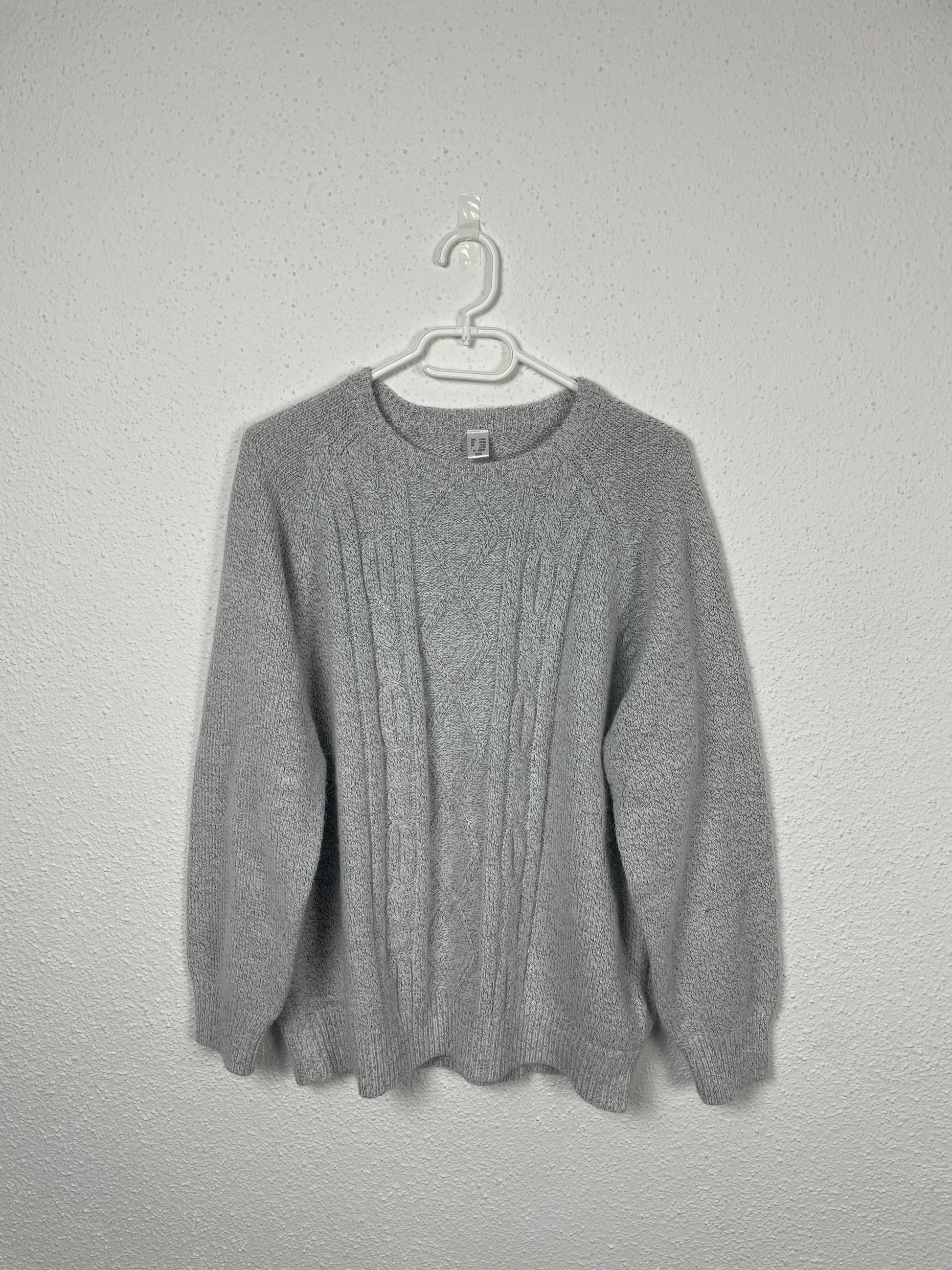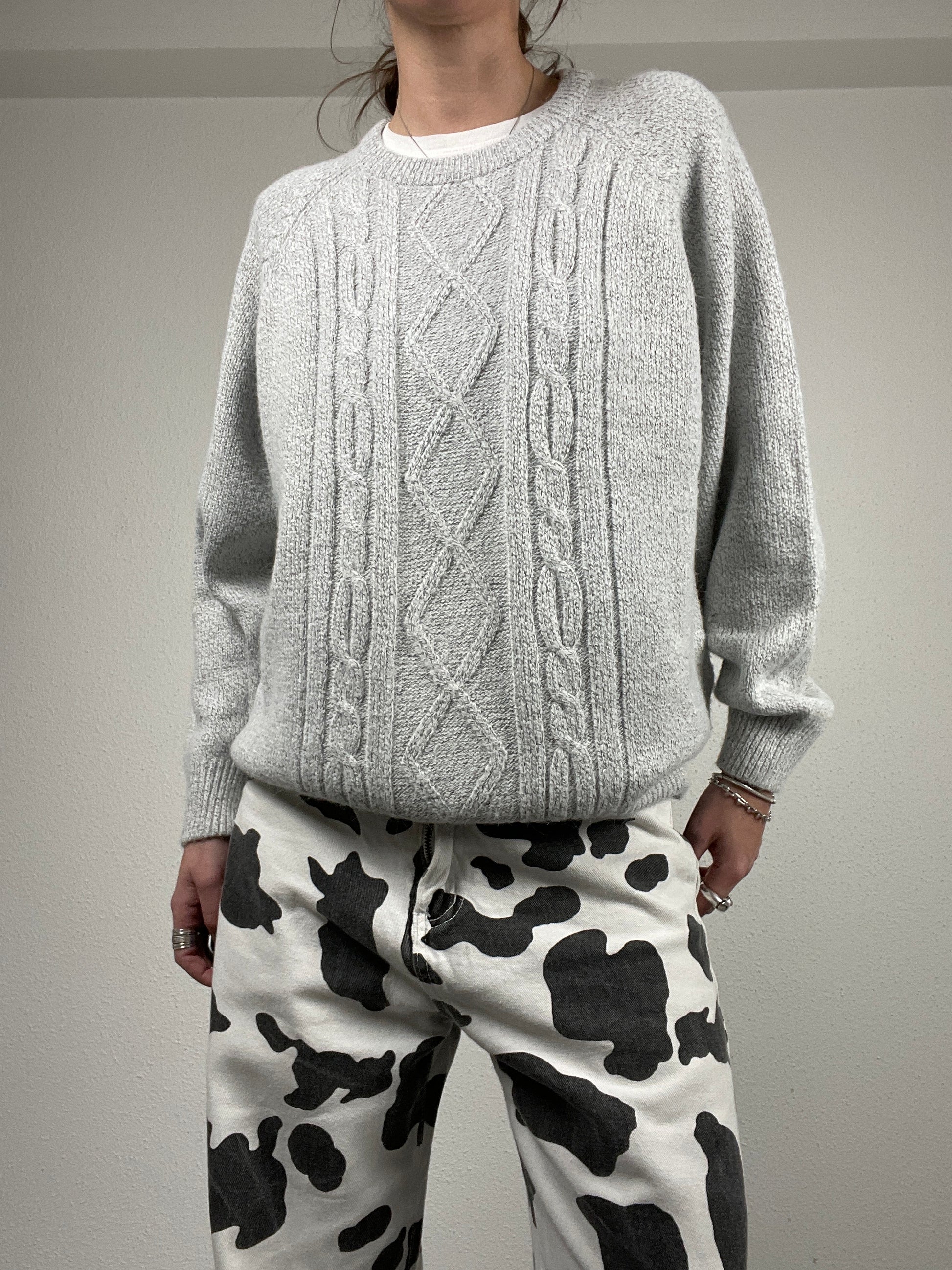 Soft textured knit featuring a classic cable pattern on the front and a relaxed, slightly oversized silhouette. Designed with a crew neckline, long sleeves, and ribbed trims. Timeless and cozy — a true everyday vintage essential that pairs perfectly with denim or tailored trousers.