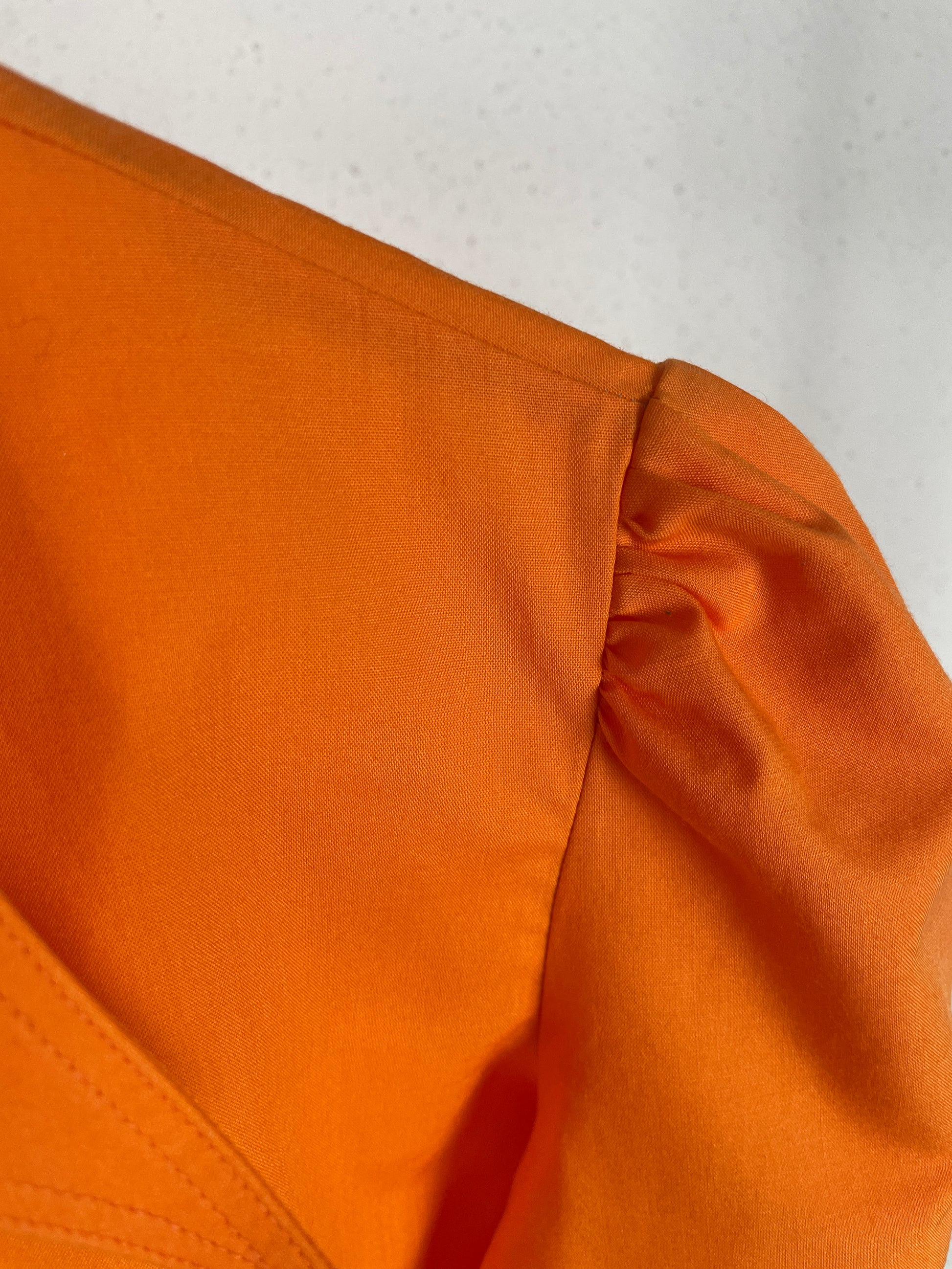Striking 70s button-up with an exaggerated point collar, structured shoulders, and a fitted silhouette. Vibrant orange fabric and classic contrast buttons give it that true retro disco-era look — bold, sharp, and iconic.
