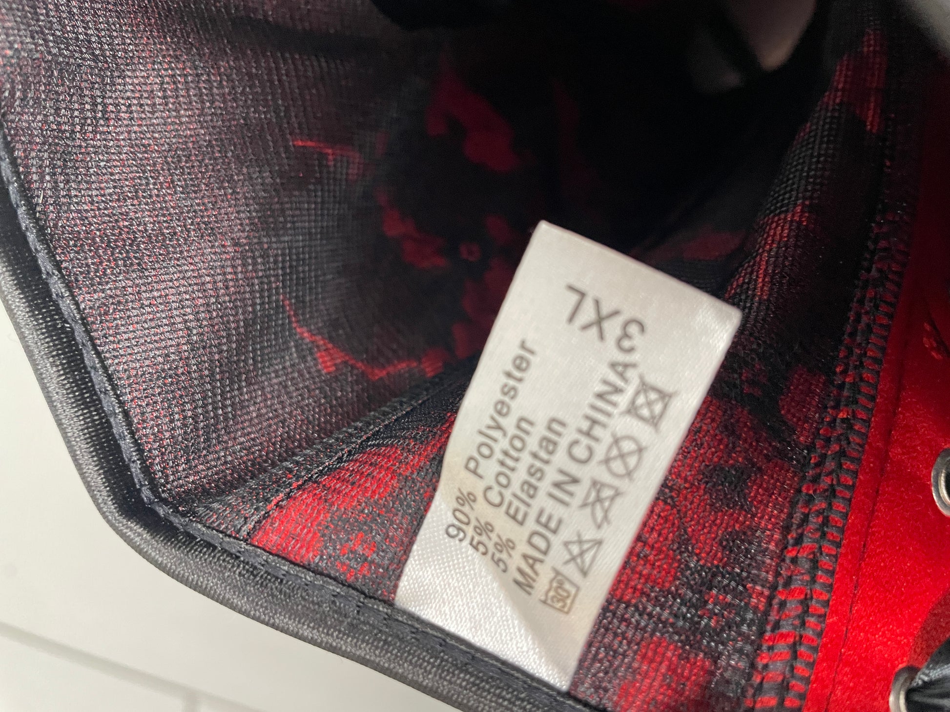 Striking strapless corset featuring a glossy red satin base with black floral embroidery, contrast boning, and lace-up detailing at the front and back. Metal busk closure adds structure and authenticity to the design. Adjustable lacing allows for a versatile fit — can be cinched for a dramatic silhouette or worn looser for comfort. A bold Y2K statement piece inspired by gothic and burlesque aesthetics.