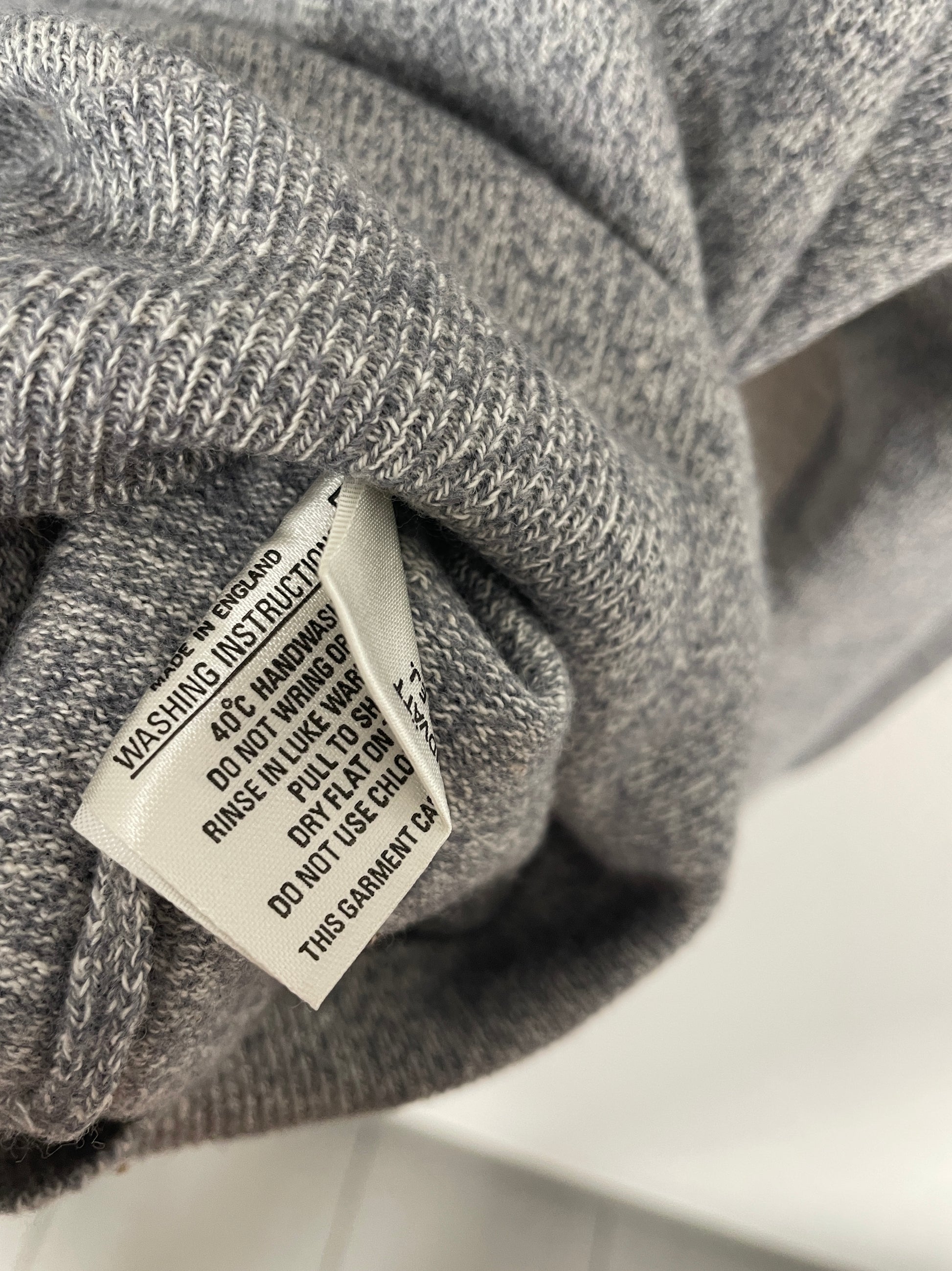 Classic vintage grey knit sweater with a polo collar and button placket. Designed with a relaxed fit and soft texture, it’s perfect for layering or wearing on its own. A timeless wardrobe staple in a versatile neutral tone.
