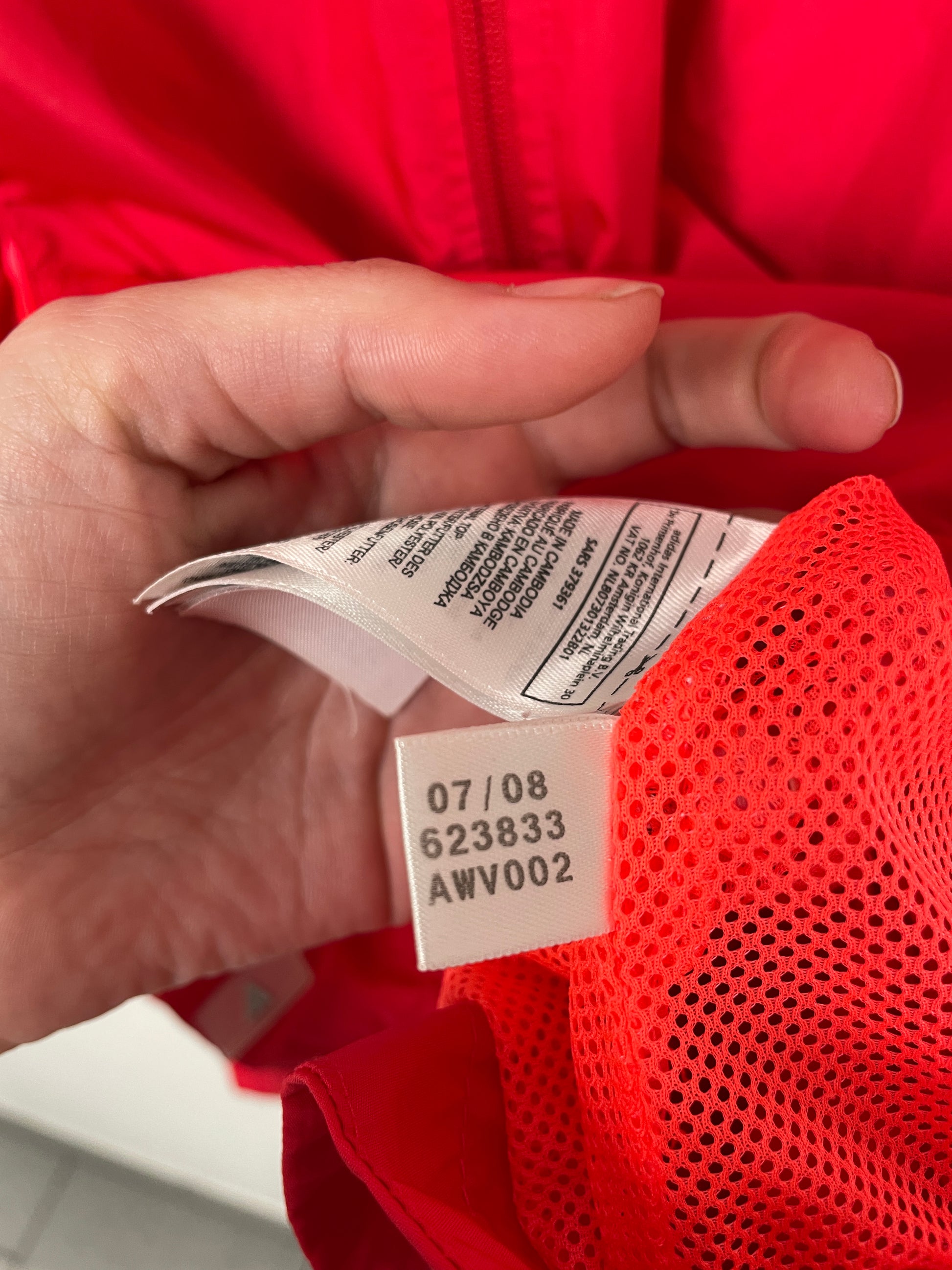 Classic sporty design featuring the iconic triple white stripes along the sleeves, high stand collar, zip closure, and side pockets. Crafted from lightweight polyester with a breathable mesh lining — durable, comfortable, and perfect for layering. An authentic late-2000s piece that captures the true retro athletic aesthetic.