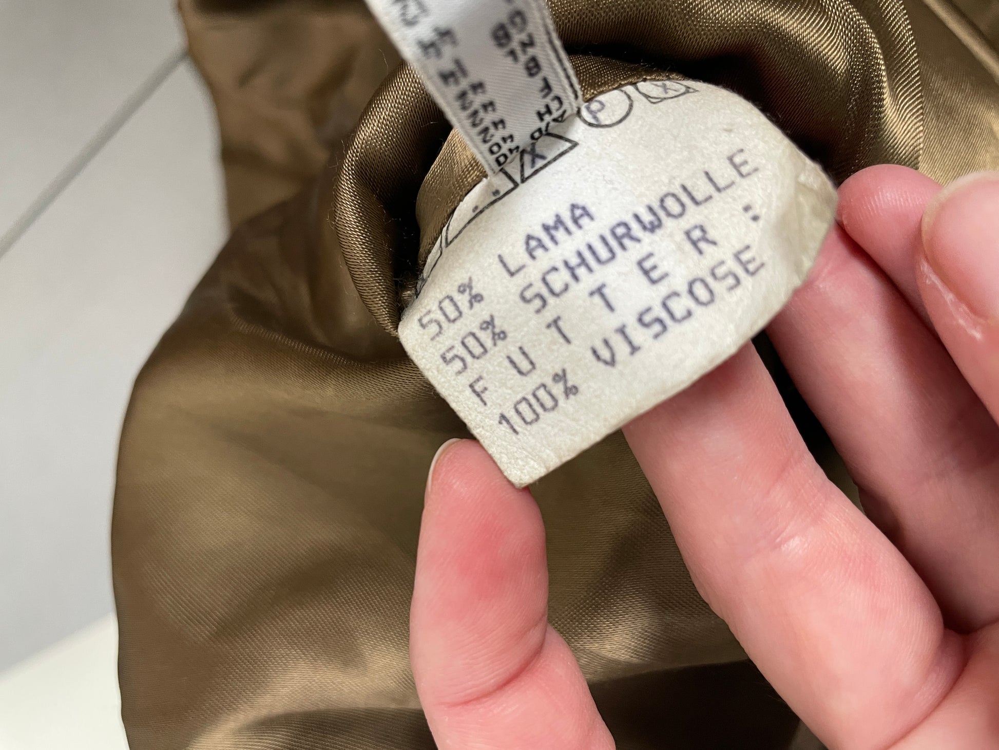 Material: 50% lama, 50% pure new wool; lining 100% viscose