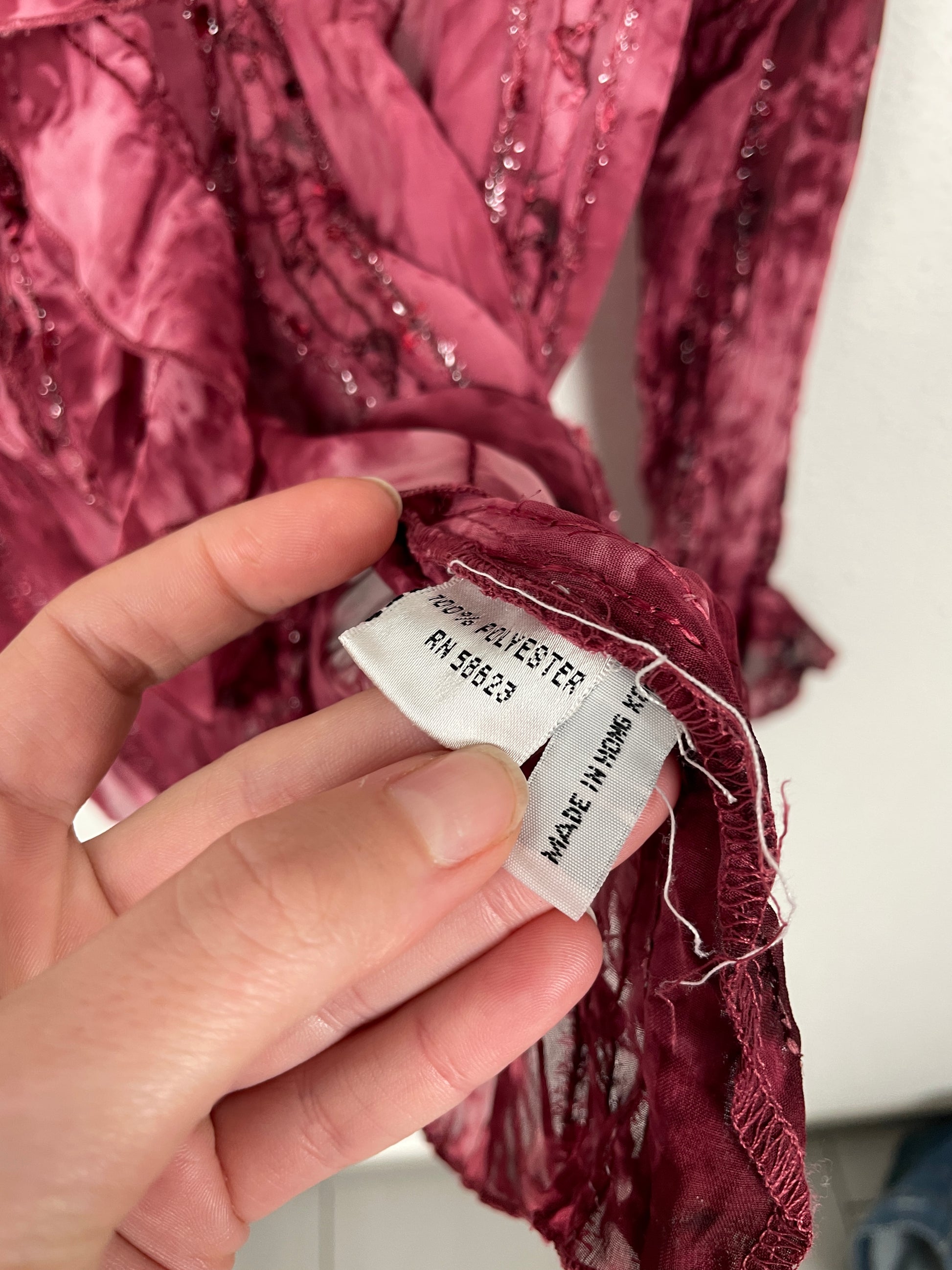 Vintage early 2000s burgundy ruffled blouse by Claudia Richard