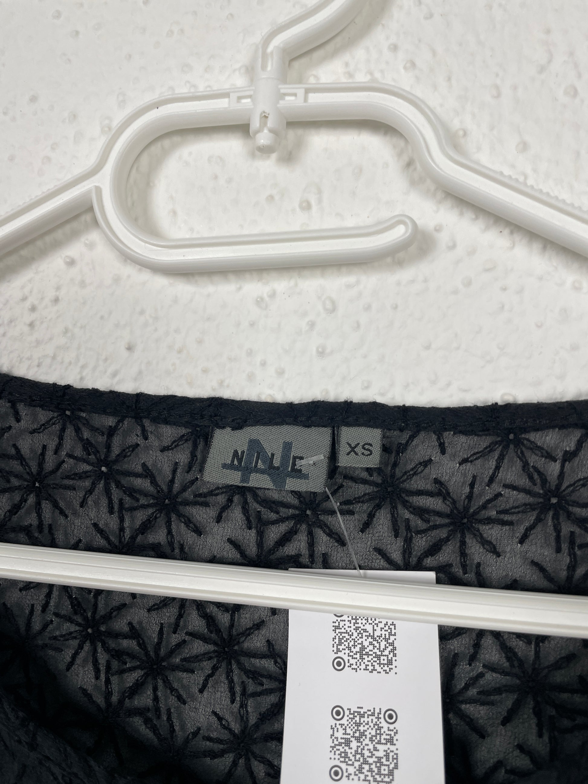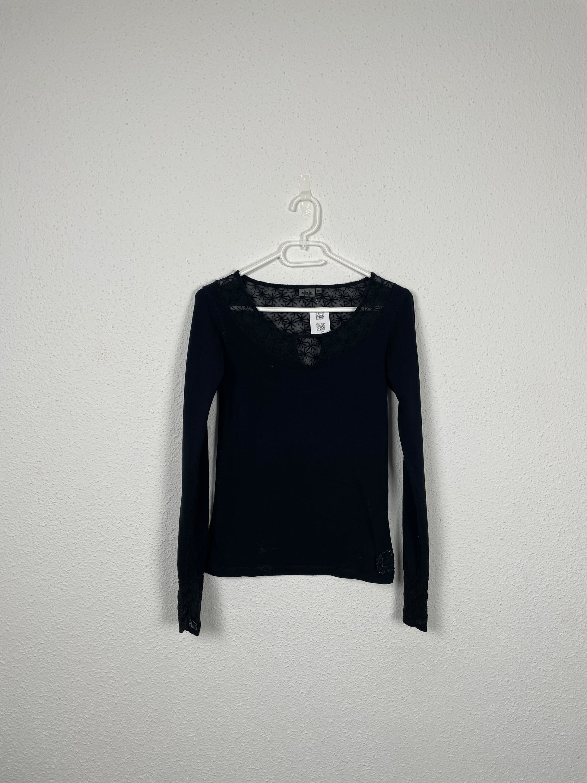Vintage style 2000s black lace-trim stretch long sleeve top by NIL