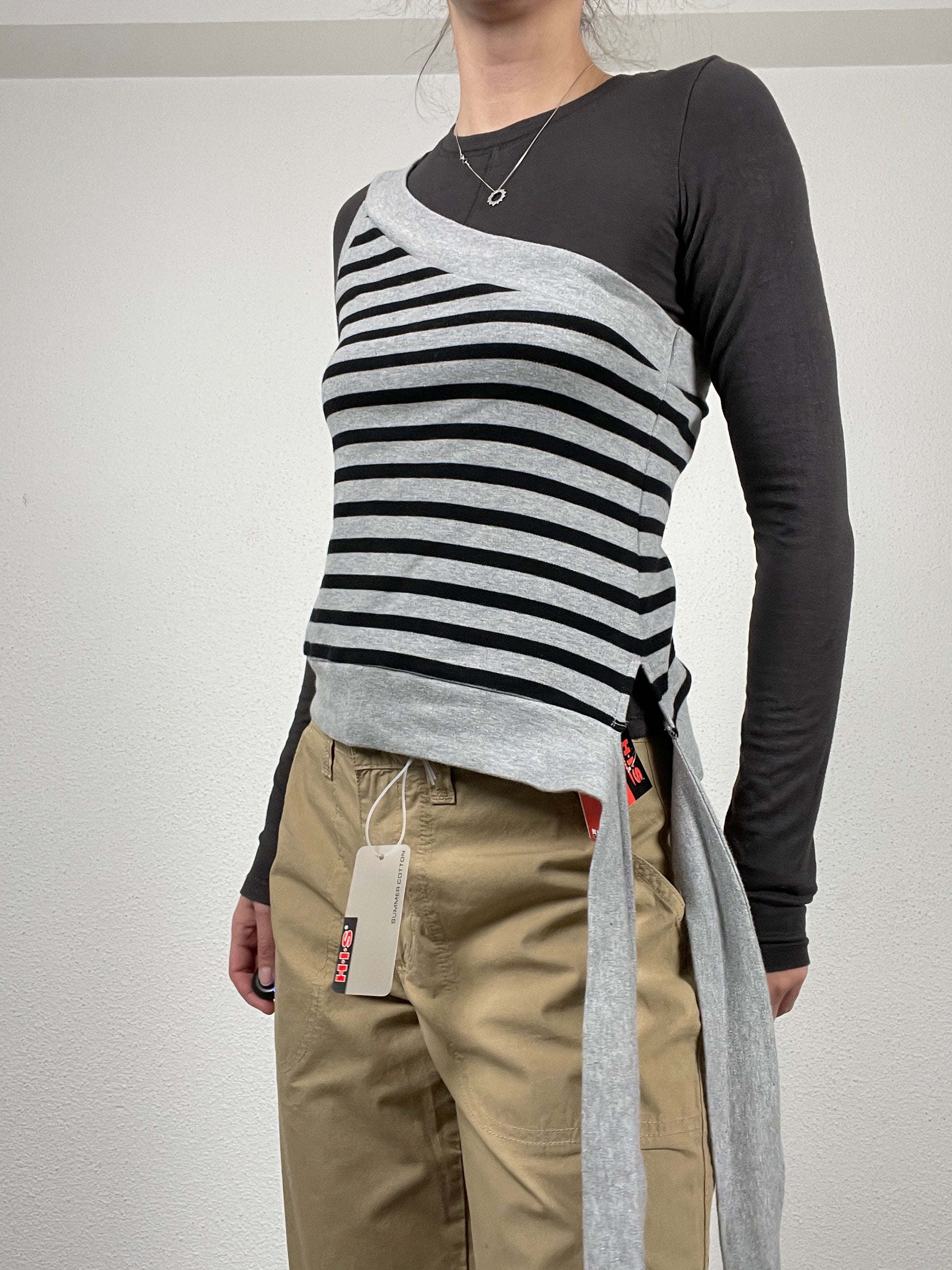 Vintage Y2K striped asymmetric top