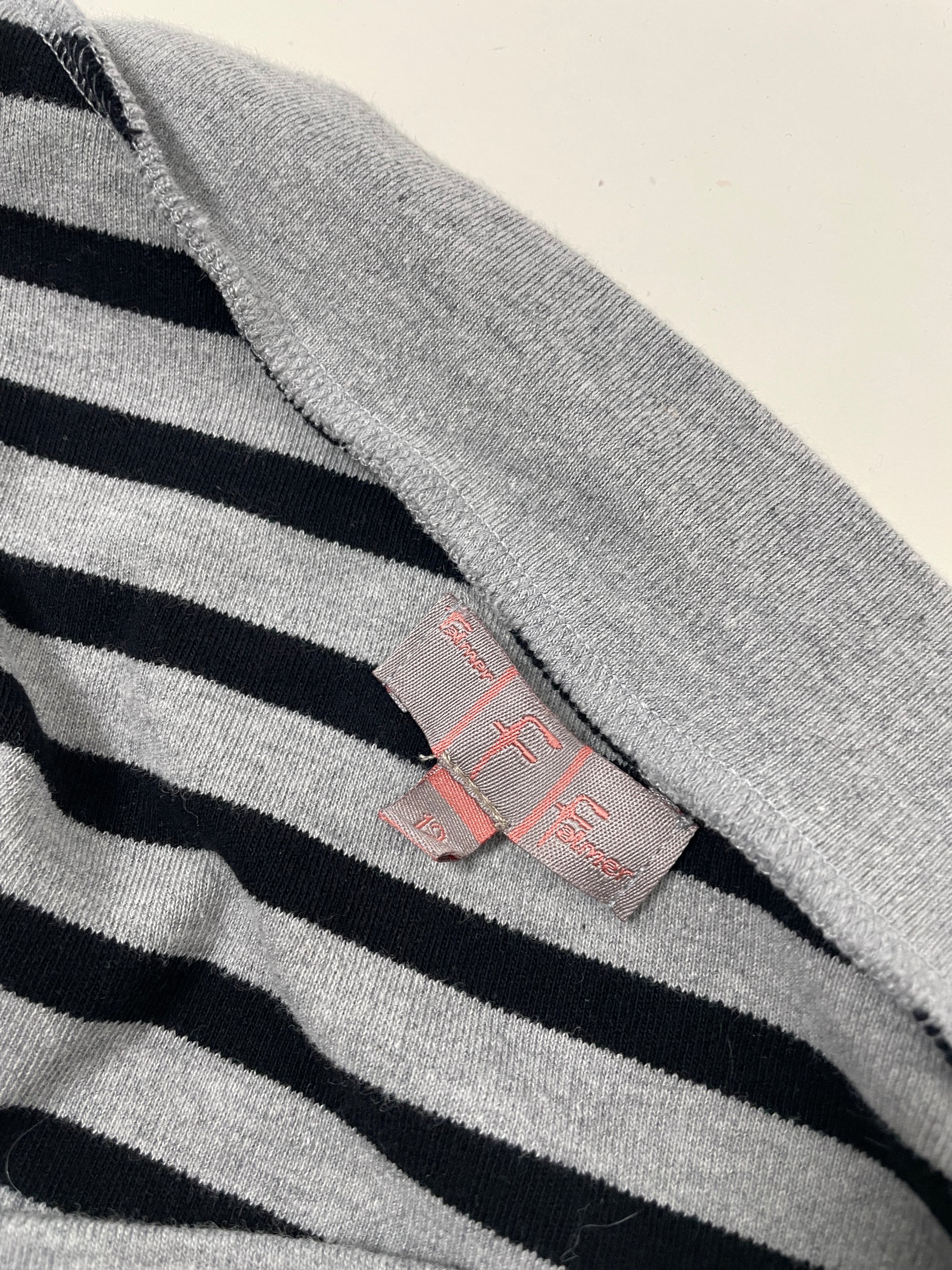 Vintage early 2000s striped top by F&F. Asymmetric design with one-shoulder overlay and side tie detail. Soft 100% cotton jersey, classic black-and-grey stripe pattern. Perfect piece for a true Y2K or indie-sleaze inspired look.