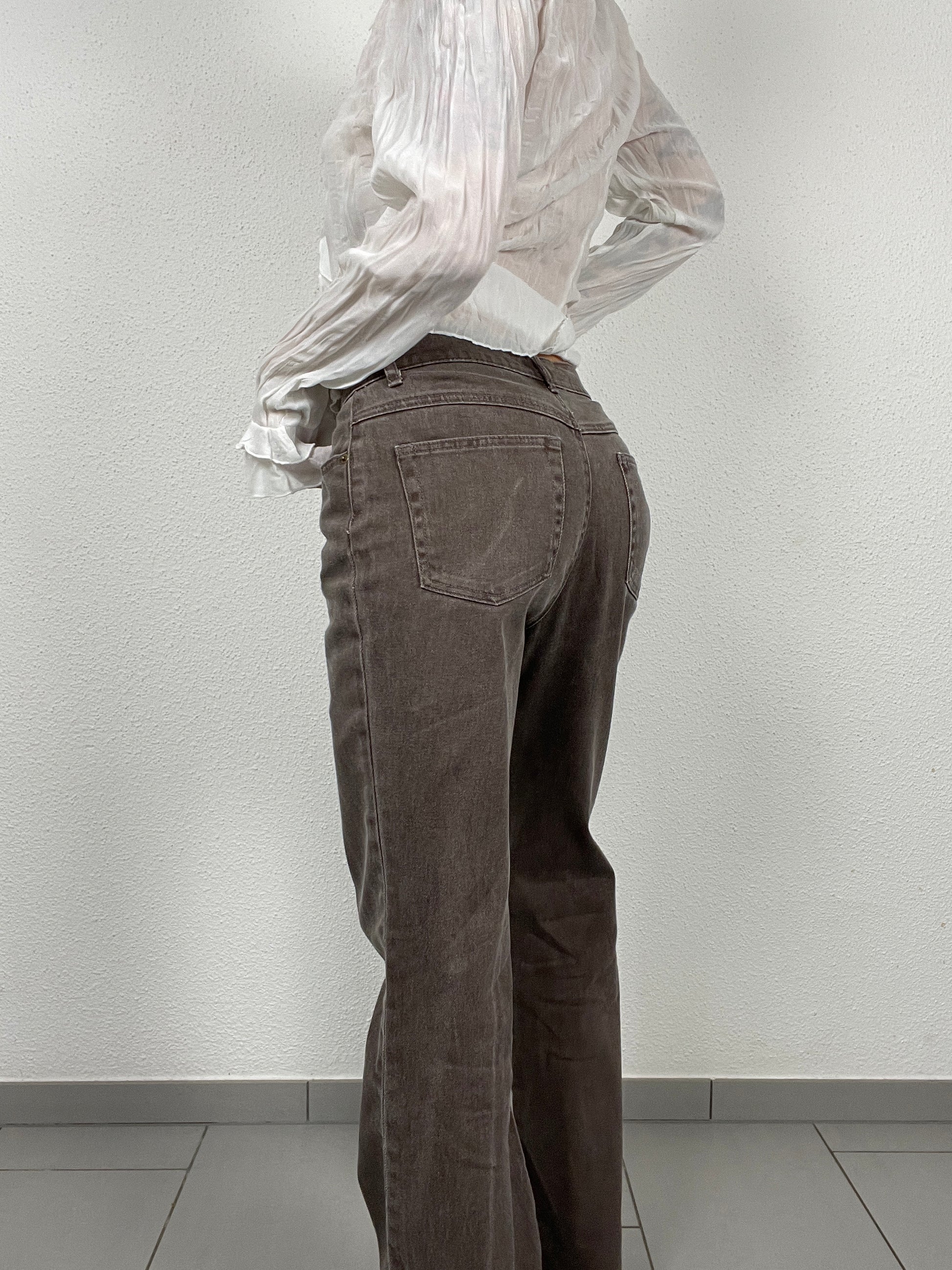 Vintage early 2000s brown high-waisted pants by Best Connections. Made from structured stretch cotton with a straight leg and subtle flare. Flattering tailored fit with clean lines and a soft taupe-brown tone — easy to pair with crisp shirts, knits, or fitted tops for a timeless Y2K look.